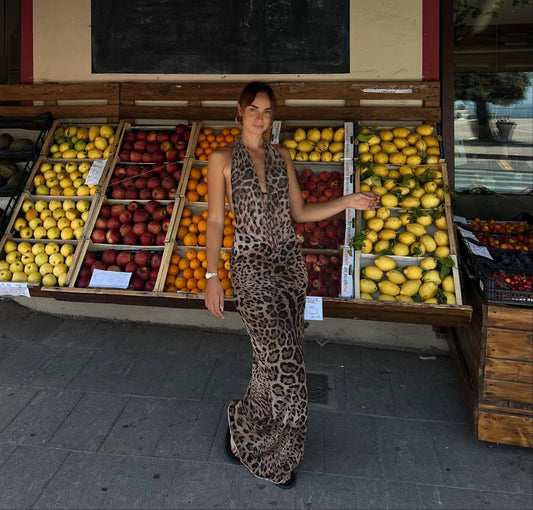 Women Leopard Print Halter Maxi Dress