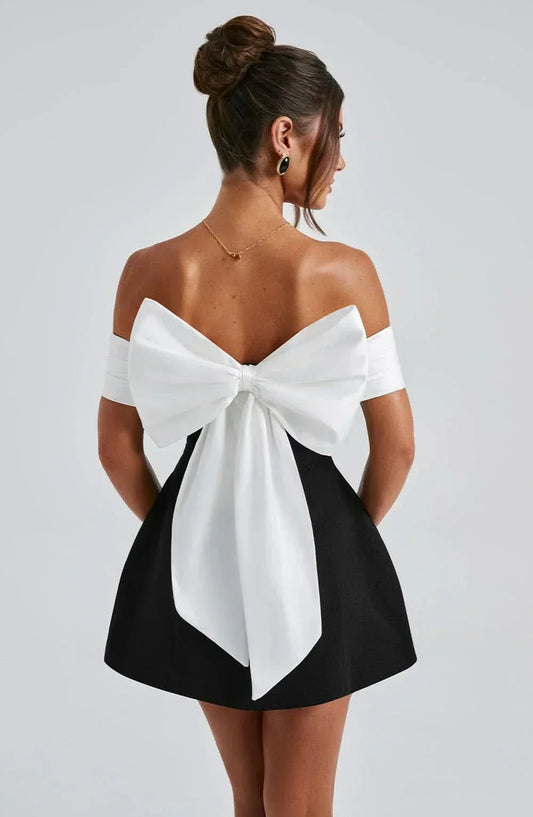 Women Off Shoulder Bow Back Mini Dress